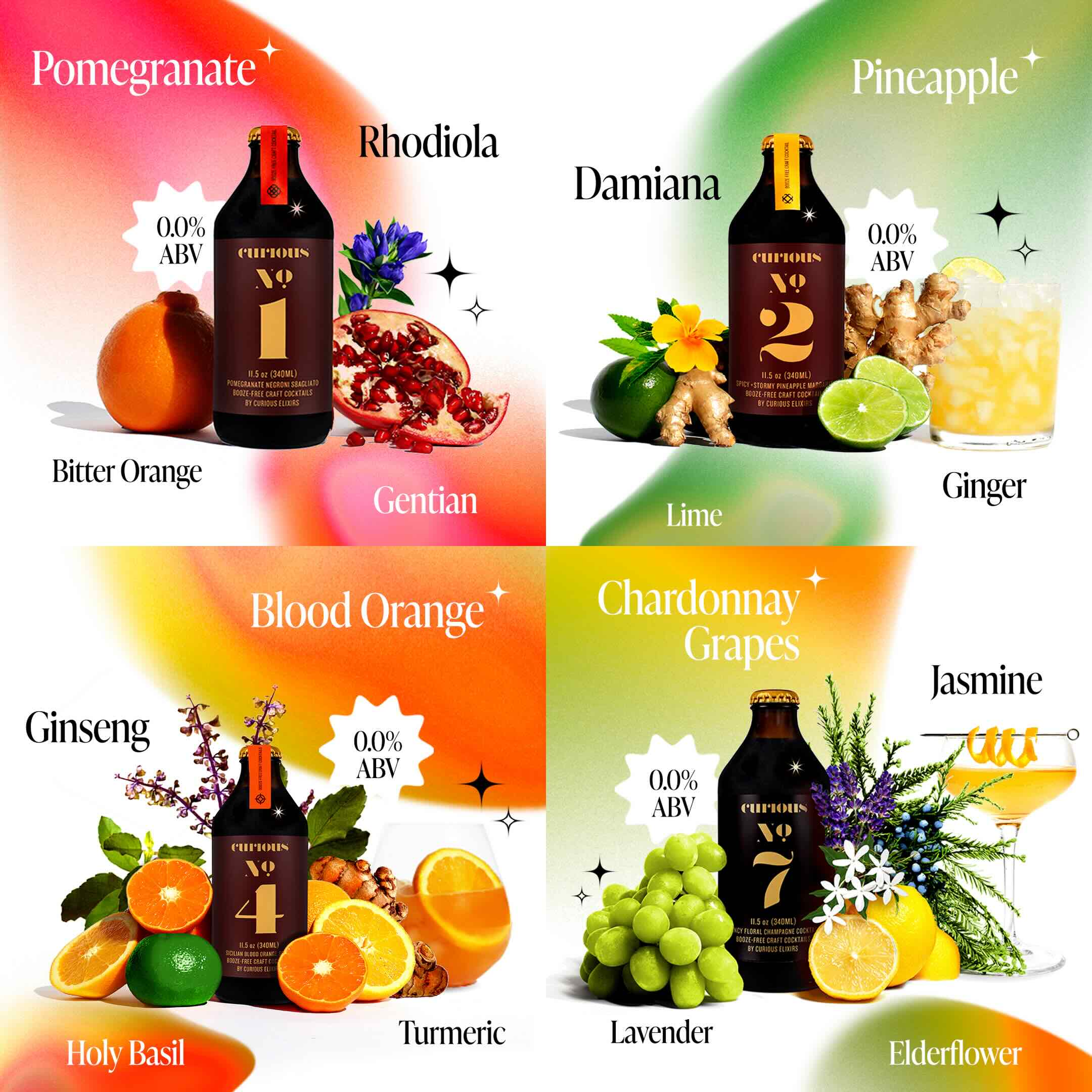 No synthetic tastes, flavored syrups or refined sugar here at Curious HQ, just the world's best organic ingredients like Turkish pomegranates, Sicilian blood oranges and Indian ashwagandha — batch-made in Hudson Valley, New York. We're obsessed with complexity and it's the most common feedback we get.
